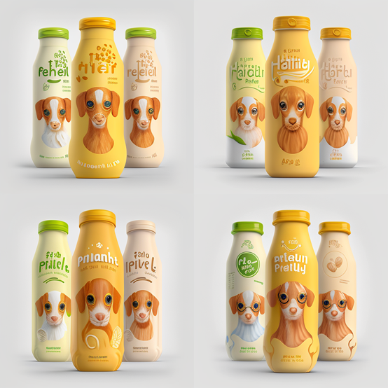 這也行?那就給它點(diǎn)難度,我要模糊一下概念,來一款花生牛奶,要求PET材質(zhì),還需要表達(dá)人與自然的和諧!