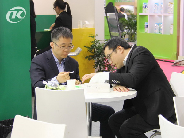 參展期間,參觀品嘗的客戶絡繹不絕,其中有一個客戶在品嘗“悠享”酸奶后,當即決定采購產(chǎn)品中試,稱一直在尋找類似的產(chǎn)品,但是一直沒有成功,很慶幸能在展會找到我們。其實我們更開心的是朵美的產(chǎn)品得到了客戶的認可,所有付出都是值得的,也正因為伴著你們的支持,泰康才一路走到現(xiàn)在,不斷發(fā)展壯大。